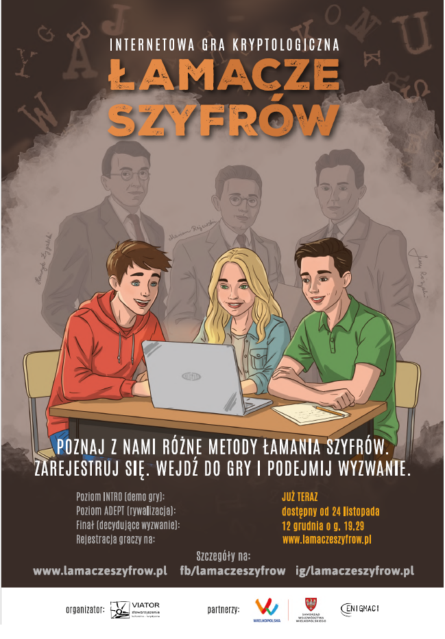 W związku ze zbliżającą się rocznicą złamania szyfrów Enigmy przez polskich matematyków – Mariana Rejewskiego, Jerzego Różyckiego i Henryka Zygalskiego, nasze Stowarzyszenie organizuje kolejną edycję ogólnopolskiego, bezpłatnego konkursu internetowego Łamacze Szyfrów, skierowanego do uczniów szkół podstawowych i ponadpodstawowych.